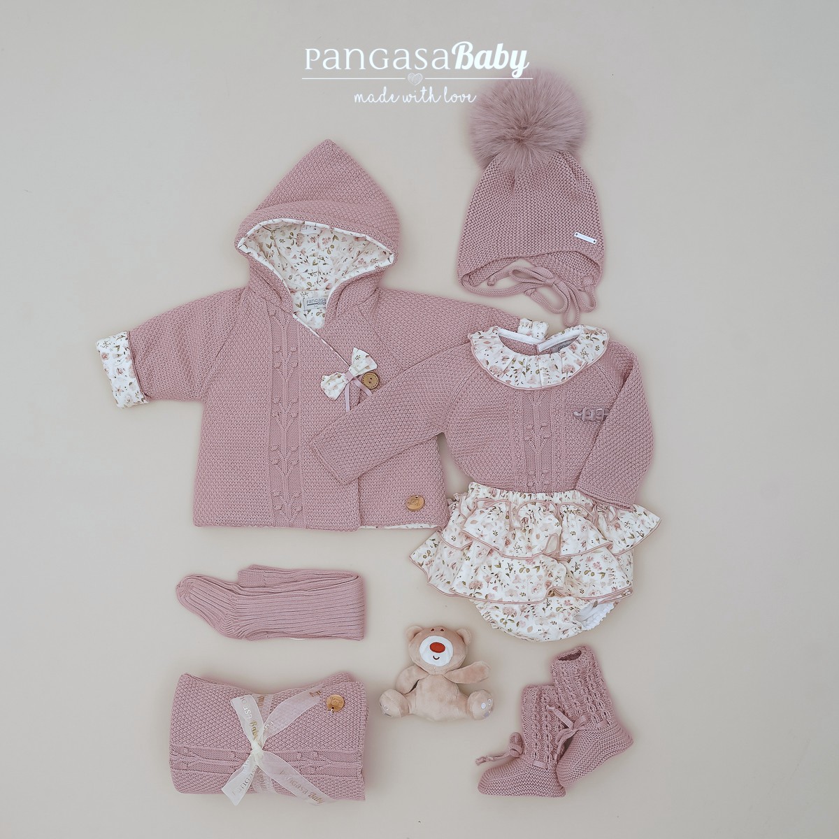 Compra Jersey y braguita para bebé, punto y tela estampada, en color rosa vintage, Collection Velvet Pink.