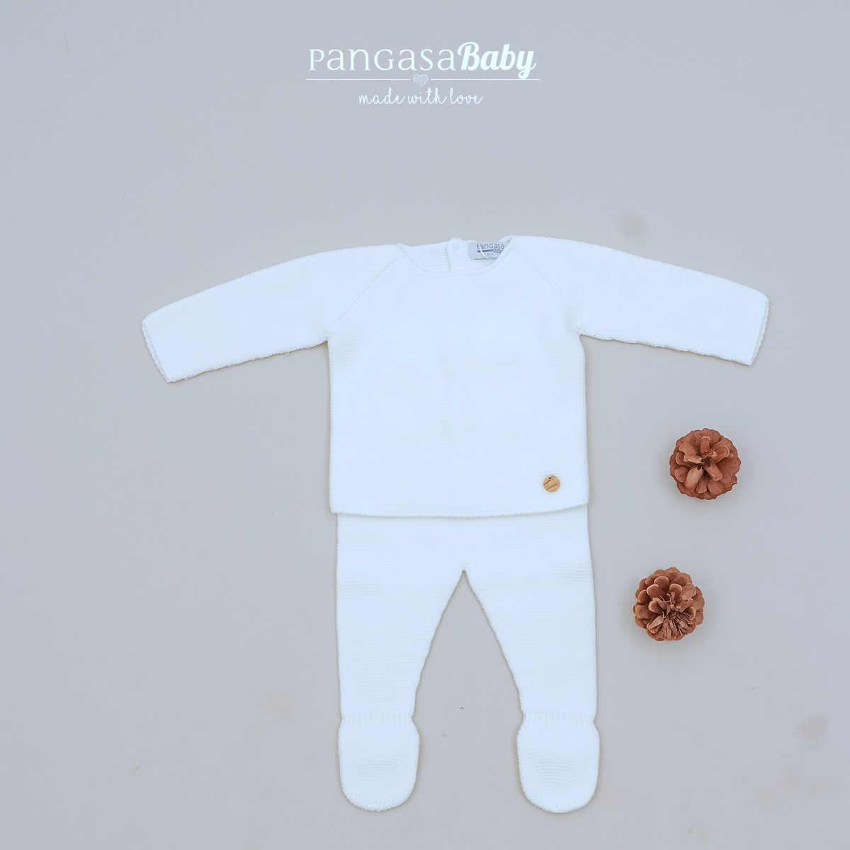 Jersey y polaina para bebé, fabricado en punto, en color marfil, polaina sin costuras y botones en la espalda.